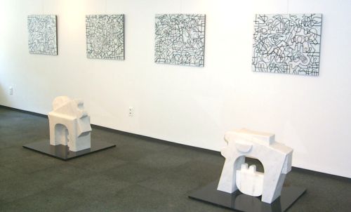 | ごあいさつ 1997年2月に、ここ茶屋町画廊で発表の機会を持つことが出来て以来、まる2年が過ぎました。その時、メキシコから展覧会や講演について3通の招待状が来ていて、そのことにどう対応するかという決断にせまられている時期でした。メキシコ人の友人の働きかけで、立体芸術協会、国立ギャラリー、べラクルーズ大学の3箇所から、発表の場を持たないかという招待を受けていたからです。 メキシコという国は、大国アメリカのすぐお隣にあり、美術文化の輸出国です。メキシコに在住していても申込んでから2年から数年待たされる国立ギャラリーで、行ったその日から活動することが出来ました。100人ものプロフェッショナルを観客にして、それもスペイン語で1時間20分の講演は、とてもエキサイティングなものでした。テレビのライブニュースに出演したり、特別放送を組んで放映されたり、新聞の一面記事で紹介されたりしました。日本での美術をあつかう方法とは随分違っていました。この国の中心へどんと飛び込んでいった私は、まだまだエネルギーがあるんだなと思いました。 ギャラリーに展示した彫刻と油絵は、その後メキシコの各都市で展示され、近代美術館にコレクションされることとなりました。その手続きのため一年後の昨夏、再度メキシコにわたり、全ての作品の行く先を決定してきました。この経験は、メキシコのみならず各国に通じるシステムを知る機会になりました。 今こうして立っていると自分の作品が少し変化したように、私も少し成長したのかなと思います。それはこの2年間の動きが私に大きな自信を与えてくれたからでしょう。 今日はこの一年間で作った作品を陳列してみました。特に油絵は、白の輝きに魅せられて塗り続けたものです。筆で絵の具を塗ることも、のみで石を彫ることも同じだと思える筋がある作業だと感じました。 物を作っていく中で、今一番感じ、思索し続けていることは、人に賞賛されたいという事だけでなく、どう作品を残していくか、あるいはどう始末していくかということです。そして後30年,どんな夢を描き続けることができるかということです。スタンスを長く、100年後の人々にも愛される作品を作りたいなと思っています。 1999年2月1日 |